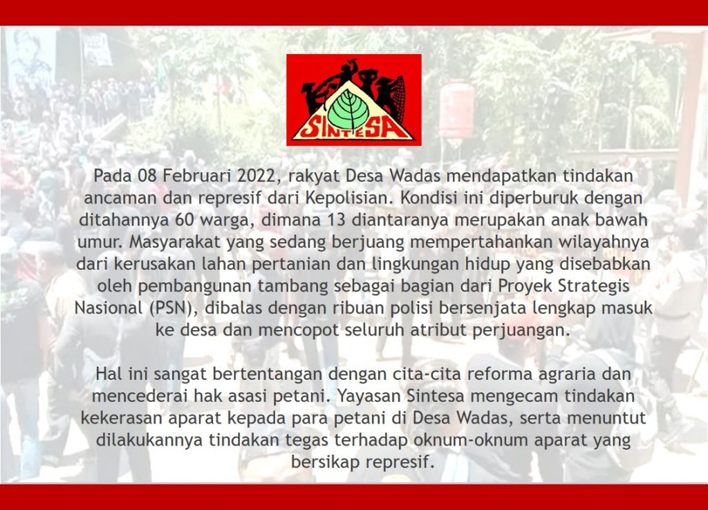 Sintesa Mengecam Tindakan Kekerasan Terhadap Petani Wadas